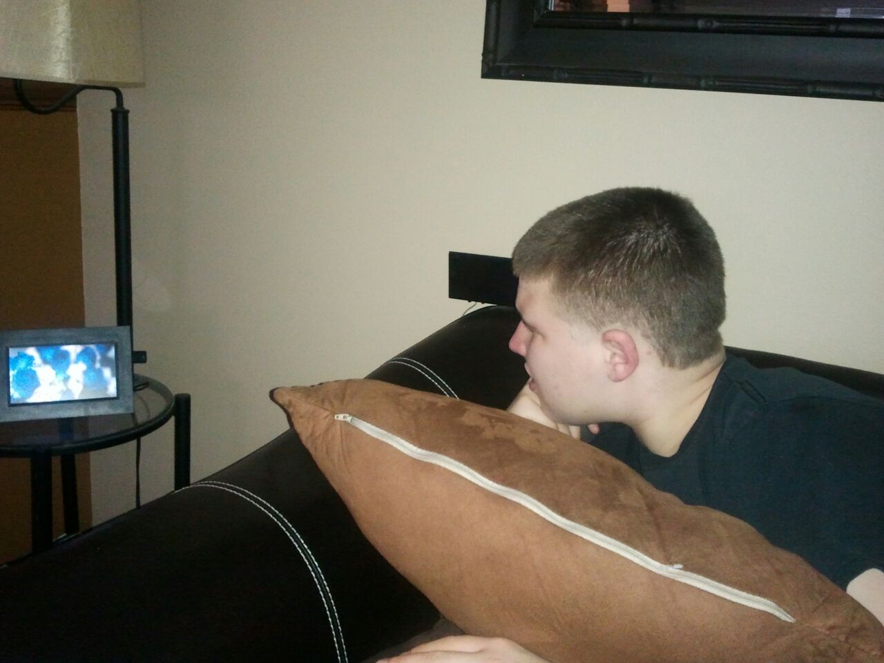 Back at my house James was glued to my new digital photo frame loaded with my wedding photos. We had the following conversation several times:
